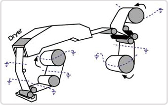 - 承印物是纸,PET薄膜,金属薄膜时,要从表面的一端到另一端呈横切状态安装设置。